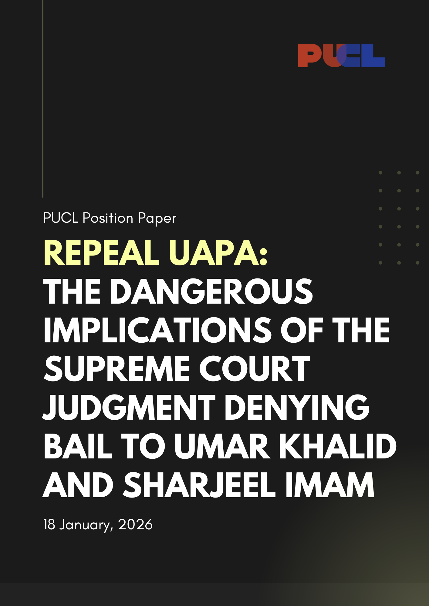 During a session of PUCL Dialogues (IX), we released a position paper on 18th January, 2026, to critically analyse the Supreme Court judgement that denied bail to Umar Khalid and Sharjeel Imam.