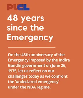 The 48th anniversary of the declaration of emergency by Indira Gandhi on 26th June, 1975 provides an appropriate historical vantage point for reflecting upon our current challenges as we confront the ‘undeclared emergency’ under the Modi regime.
