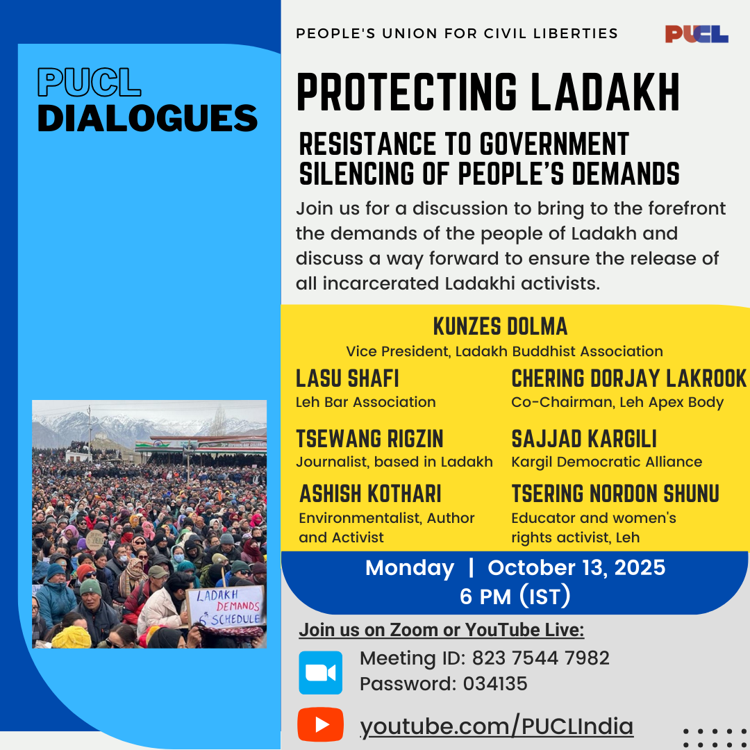 - PUCL condemns the throttling of the right to speech, association and assembly in Ladakh